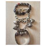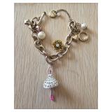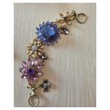 Fossil Floral and Bee Charm Keychain with Blue and |