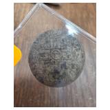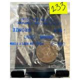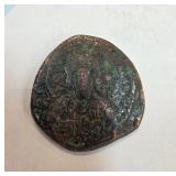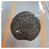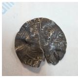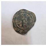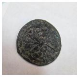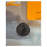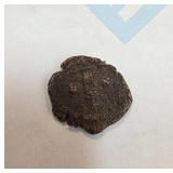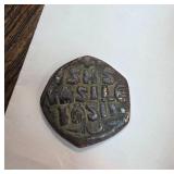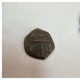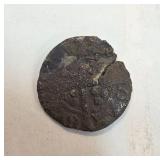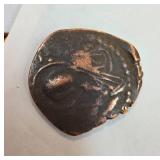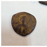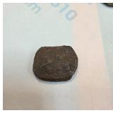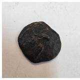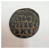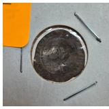 Aged Bronze Coin with Indistinct Markings Enclosed |