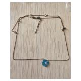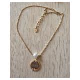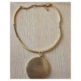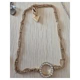 Gold-Tone Chain Necklace with Circular Rhinestone |
