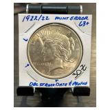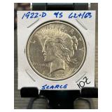 1922-D Peace Silver Dollar, MS 62/63 Condition |