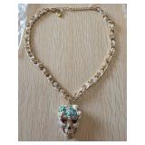 Betsey Johnson Skull Pendant Necklace with Floral |
