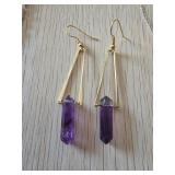 Gold-Tone Dangle Earrings With Amethyst Pendants |