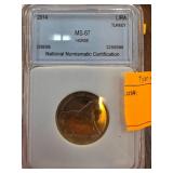 2014 Turkey Lira Coin MS-67 National Numismatic Ce |