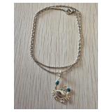 Sterling Silver Crab Charm Necklace with Non-Sterl |