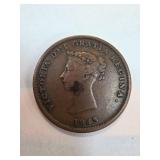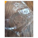 Canadian One Cent Coin, 1859, Queen Victoria Portr |