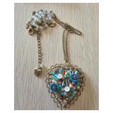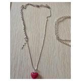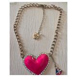 Betsey Johnson Pink Heart Necklace with Chain and |