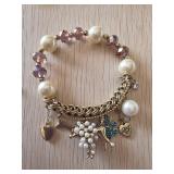 Gold-Tone Bracelets with Gemstone and Pearl Accent |