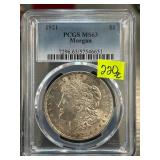 1921-D Morgan Silver Dollar in High Grade Holder |