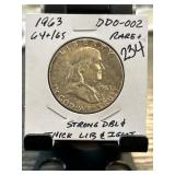 1963 Franklin Half Dollar DDO-002, Rare Variety, G |