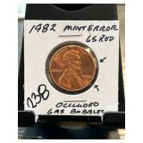 1982 Lincoln Cent Mint Error with Occluded Gas Bub |