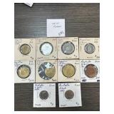 10 Foreign Coins in Holders, Mixed Countries and D |