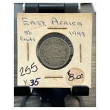 1949 East Africa 50 Cents Coin Featuring King Geor |