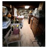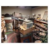 Craftsman riding lawn mower 38” cut, Toro Wheel Horse 244-H riding lawn mower 38” cut w/snow blade, Toro pull behind yard cart, 2 – Ryobi string trimmers, Antiques, Household & Misc. 20gal western crock, 15gal western crock (w/good bales), 10gal Western crock, 10gal Illinois crock, 4gal crown churn (no lid), 3gal Ruckels, lot misc. jugs & crocks, crock chicken water base, 3 – small dress forms, lanterns, lg lot misc. primitives, Lot “Armetale Wilton” puter pieces, lot “Ridgeway Staffordshire England” china, lot graniteware, Several glass display counters, 3 – oak, oak countertop displays w/old glass (must see), secretary, Hand carved bar cabinet, hand carved hope chest, lot misc. wooden boxes many w/graphics, 15+ vintage wire ice cream chairs & multiple tables, steamer trunks, roll top desk, pie safe, Lg lot baseball cards, lot old costume jewelry, “Putnum dyes & tints” metal box, Ben Franklyn fireplace, Hoosier cabinet base w/enamel top, lot blue canning jars, lot beanie babies & wizard of oz dolls, Lg lot flower sacks, “White” treadle sewing machine, antique collapsible baby bed, lot occ tables, Antique front porch baby bed, parlor stove, lot misc. dressers, cabinets & chest, misc. Buschel baskets, Lot misc. old doors, misc. wooden chairs, lot sawmill blades, DeLaval cream separator, Bent glass china hutch, US Standard platform scale, Lot misc. milk cans, 3 – poly wicker loungers, classic Schwinn 10spd. Bicycle, Croque set, SS & enamel sinks, “last perch” bird trap, walking plow, stove base, slate top patio coffee & end tables, Lot long handled tools,