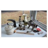 Tools, Tool Chests, Bookcase, Cabinets, Dry Sink with Pump, Braided Rugs, Incandescent Bulbs Tilt Wood Trash Can, Mission Cabinet, Cupboard, Mushroom Concrete Outdoor Decor, Dyson, Cast Boston Terrier, Bogen Amp, Fuji Camera, Loading Ramps, Wheelchair Ramps, Wheelchair, Ceramic Christmas Tree, Bells, Job Smart, Pothos Plant, Snake Plant, Stryker, Roosters, Crocks, Planters, Anvil, Trailer Hitch, Milk Can, MCM Ceramic Mushroom, Canning Jars, Heaters, Corner Display Cabinet, Milk Glass Lamps, Seeders, Lodge Cast Iron, Corning Ware, Correlle, Drill Press, Pfaltzgraff, Jugs, Powerwasher, Ladders, Black and Decker, Saw Horses, Weights, Wheel Barrows, Apple Canisters, Model Ships, MCM Metal Bookshelf, Enamel, Conrete Garden Decor, MCM Dining Room Table and Chairs, Lazy Boy Recliner, Tea Pots, Ironstone, Bushel Baskets, Fairbanks Scales, Homco |