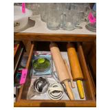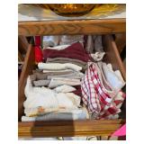 Kitchen Towels and Pot Holders in Wooden Drawer |