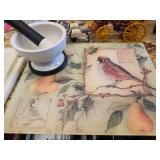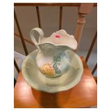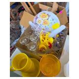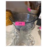 Pressed Glass Bowl and Eight Mugs with Floral Desi |