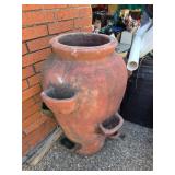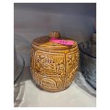 Brown Glazed Ceramic Lidded Jar with Embossed Desi |