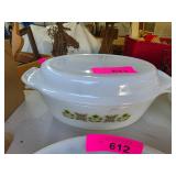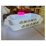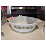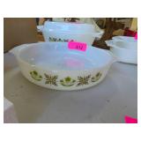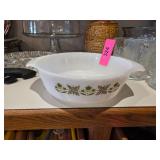 Vintage Fire-King Round Baking Dish with Green Flo |