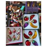 Glass Christmas Ornaments Including Fruit, Santas, |