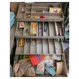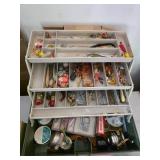 Vintage Fishing Tackle Box with Lures, Reels, and |