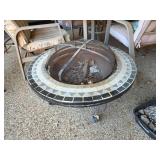 Round Tile-Top Fire Pit with Mesh Screen and Metal |