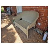 Woven Wicker-Style Outdoor Bench With Curved Back |