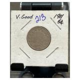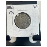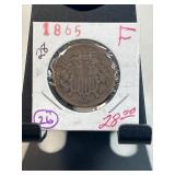 1865 U.S. Three-Cent Nickel Coin, VG Condition |