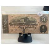 1958 Mexico 5 Pesos Banco de Mexico Banknote |