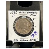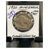1935 Buffalo Nickel with Mint Error and Clash Die |