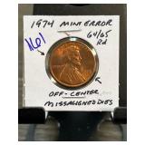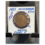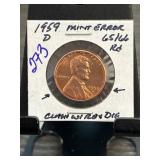 1959 Lincoln Cent D Mint Error with Clash with Rev |