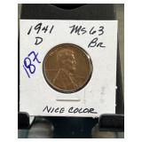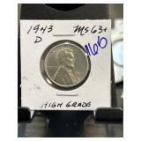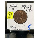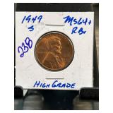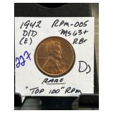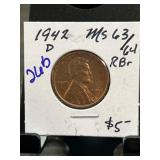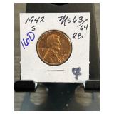 1942-D Lincoln Wheat Cent Graded MS63/64 RB |