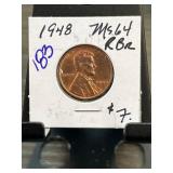 1948-D Lincoln Wheat Penny Red Gem BU MS-65 |