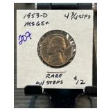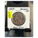 1953 Jefferson Nickel, MS66+/67 Grade, GEM Uncircu |
