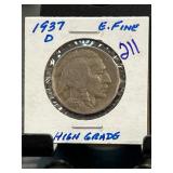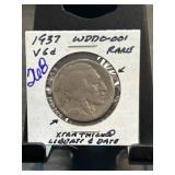 1937 Buffalo Nickel WDPO-001 V6d Rare Variety |
