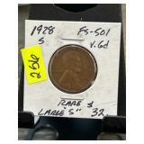 1928-S Lincoln Wheat Penny FS-501 with Large ‘Sâ |