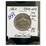 1962 Jefferson Nickel DDR-002 Rare Double Die |