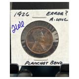 1926 Lincoln Wheat Cent with Planchet Bend, Possib |