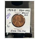 1959-D Lincoln Cent DDO-002 MS64 Red with Double D |