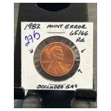 1982 Lincoln Cent Mint Error Occluded Gas MS65RD |