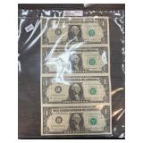 Uncut Sheet of Four Uncirculated $1 Bills Featurin |