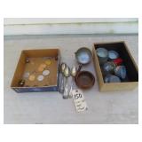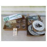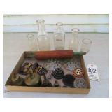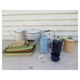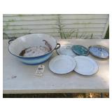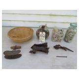 Antiques & Collectibles: Primitive kitchen cupboards; Griswold cast iron lamb mold; Griswold enameled dutch oven; Blue decorated and other stoneware crocks and jugs; large amount of brownware, yellow ware mixing bowls, spongeware, and other stoneware; blue and grey granite enamelware; Longaberger baskets; farm & kitchen primitives; household scales; advertising signs & tins; Medina Fair memorabilia; Chippewa Lake items; Pyrex bakeware; green depression and Fenton glassware; old canning jars & glass bottles; Dazey and barrel butter churns; milk bottles; mantel clocks; straight razors; feed and seed bags; Silver and other coins; costume jewelry; old watches; Highway King child’s wagon; kitchen tables; wooden chairs; misc. old furniture; old books; Insignia 65” flat screen TV; curio cabinet; vintage toys; blanket chest; dressers & chests of drawers; quilts; sewing items; records; steel wheels; dinner bells; misc. antiques and collectibles.