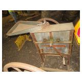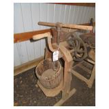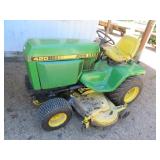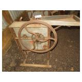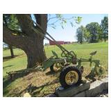 Farm Items: John Deere 420 lawn tractor w/ Onan gas engine, 60” deck, & 54” front blade; (2) John Deere 2 bottom plows; fodder chopper; platform scale; Lincoln Idealarc 300 & AC 225 welders; 3KW generator; (4) John Deere Corn Shellers; 7’x15’ & 7’x16’ flatbed hay wagons; Cider press;