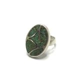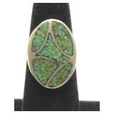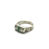 Sterling silver ring with malachite and mother of pearl inlay. 5.90 grams total weight. Size 10 1/2.