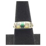 Sterling silver ring with multiple stone inlay. 1.67 grams total weight. Size 5 1/2.