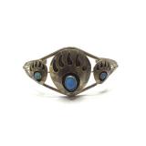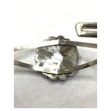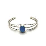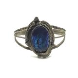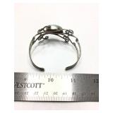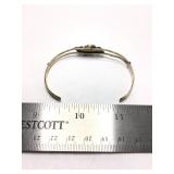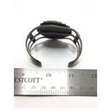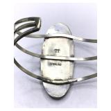 Sterling silver cuff with opal-like stone. 25.53 grams total weight. Made in Mexico.