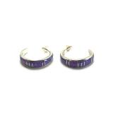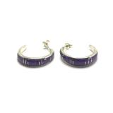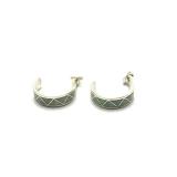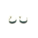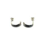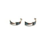 Sterling silver half hoop earrings with opal inlay. 3.22 grams total weight. Made by Joann Peina.