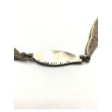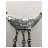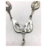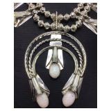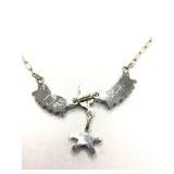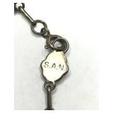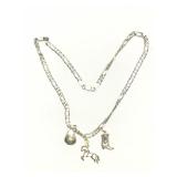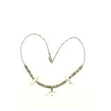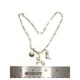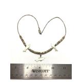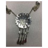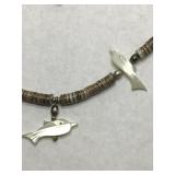 Sterling silver necklace with shell fetishes and beads. 9.25 grams total weight. 16 inches length.
