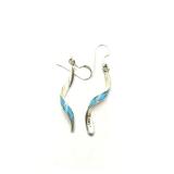 Sterling silver earrings with opal inlay. 3.21 grams total weight. Made by Joanna Peina.