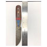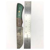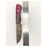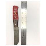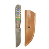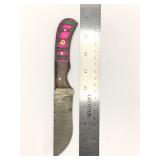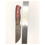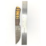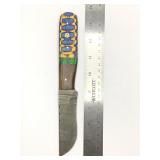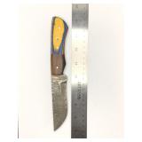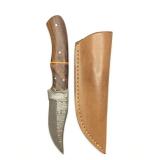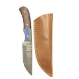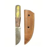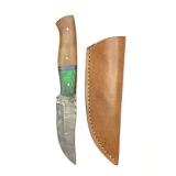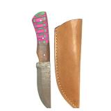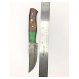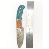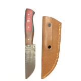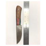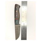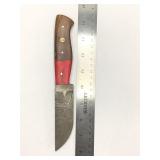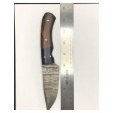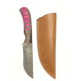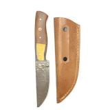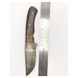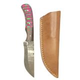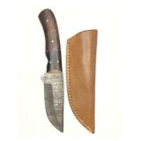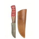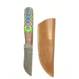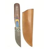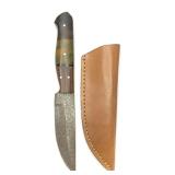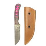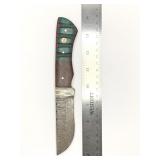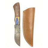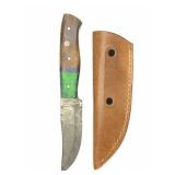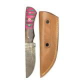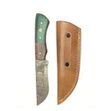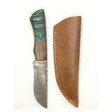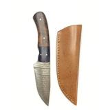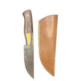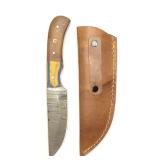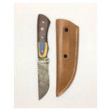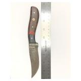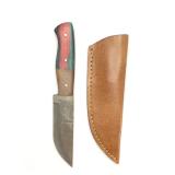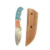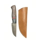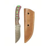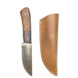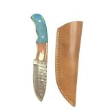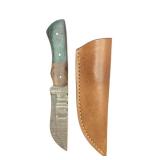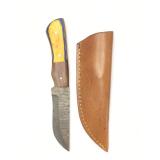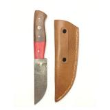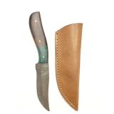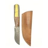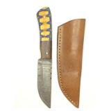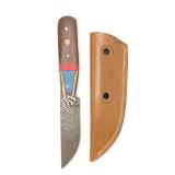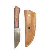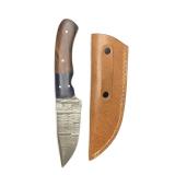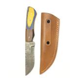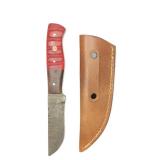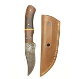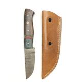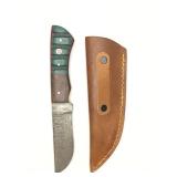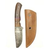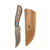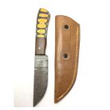 Damascus skinning knife with sheath. 4 1/4 inch blade length.