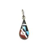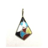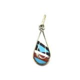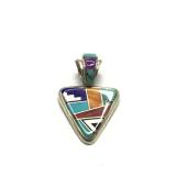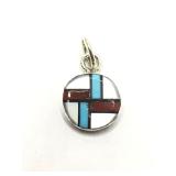 Sterling silver pendant with multiple stone inlay. 1.10 grams total weight. Made by John Cheama.